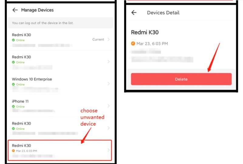 - Aqui você pode ver todos os dispositivos vinculados. Agora, dê uma olhada em todos os dispositivos vinculados e selecione os dispositivos indesejados/suspeitos e toque no botão “Excluir” para removê-los.