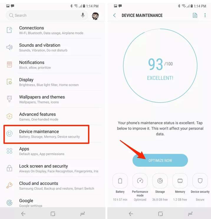 A maior parte do telefone Samsung Galaxy possui um aplicativo excelente, que é o aplicativo “Manutenção do dispositivo”. Com a ajuda deste aplicativo, você pode otimizar seu telefone, pois pode fechar aplicativos não utilizados, limpar caches, liberar espaço na memória etc. e garantir que seu telefone funcione da maneira mais eficiente possível. Quanto menos energia você desperdiçar em serviços de que não precisa, mais bateria terá para durar mais tempo.