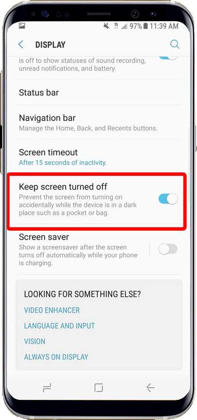 Mas você pode impedir que a tela do telefone Samsung Galaxy ligue acidentalmente e economize bateria, certificando-se de não ligar a tela inadvertidamente enquanto não estiver usando o telefone para descobrir apenas mais tarde que perdeu uma grande parte da energia da bateria.