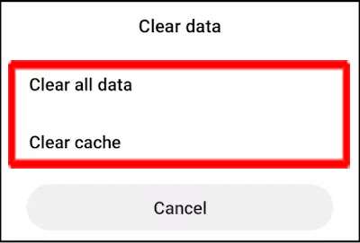 - Em seguida, toque nas opções “Limpar todos os dados” e “Limpar cache”.