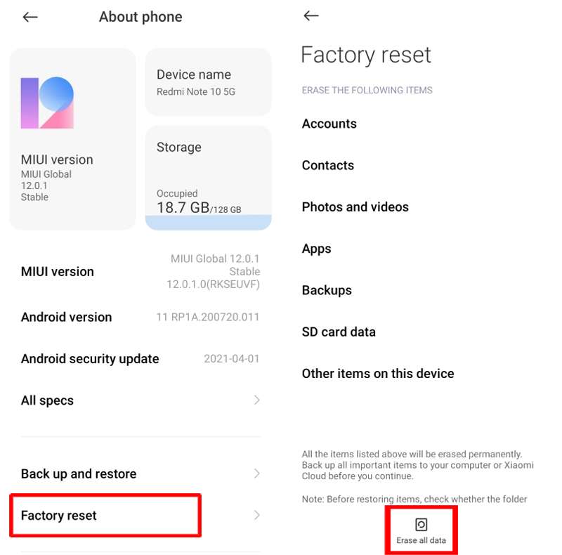 Solução 6: Redefinir fábrica do seu telefone Redmi Note 10 Pro/10 Pro Max
