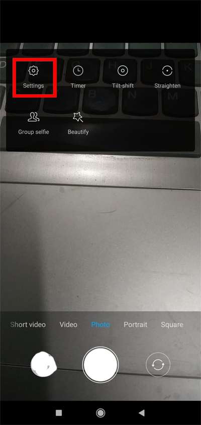 - Clique nas 3 linhas horizontais localizadas no canto superior direito e depois toque no ícone “Engrenagem” para abrir as configurações da câmera.