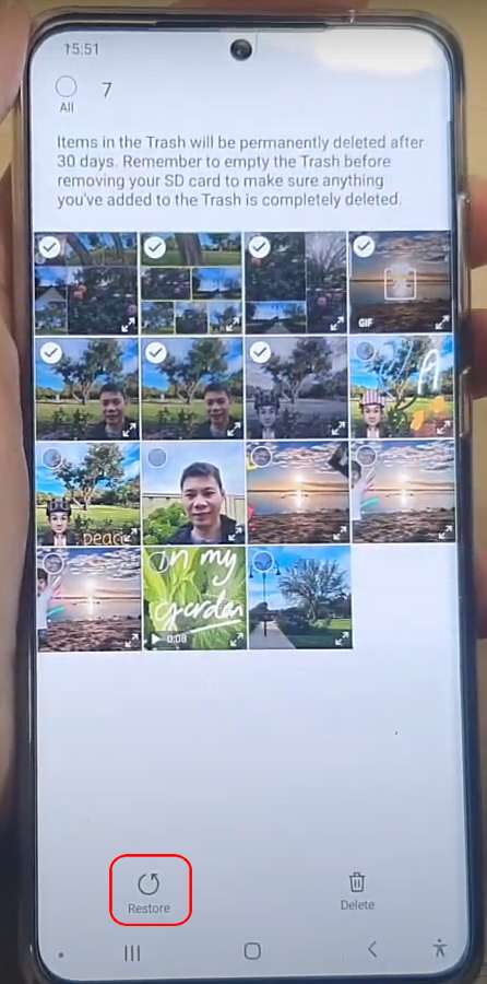 - Em seguida, selecione as fotos/vídeos que deseja restaurar e toque em “Restaurar”.